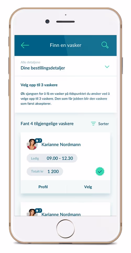 Vaskehjelp er en markedsplass som kobler renholder og kunder sammen. Du velger selv den renholderen som passer deg best basert på tilgjengelighet, pris og tilbakemeldinger fra andre kunder. Vi har mange registrerte renholdere, både i store byer og mindre tettsteder.